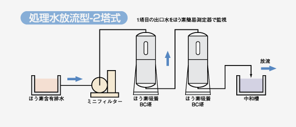 当社の排水処理装置はイオン交換樹脂をはじめとした各種吸着材を充填しています。当社郡山工場でそれらの委託再生を行うことにより、水の循環利用と資源の回収を可能にしています。